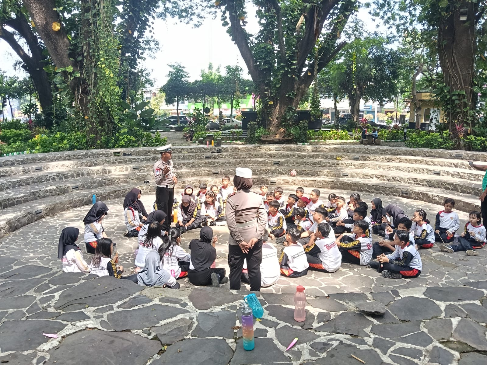 Satlantas Polres Kediri Kota Sosialisasi Pendidikan Lalu Lintas untuk Siswa SD di Taman Hutan Joyoboyo
