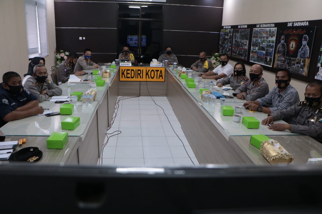 Pukul 13.00 WIB – KBO dan Anggota Sat Binmas mengikuti Lat Pra Operasi Mantap Praja Semeru 2020 dalam bentuk Visualisasi /Pemutaran Video di Aula Rupatama Polresta Kediri.