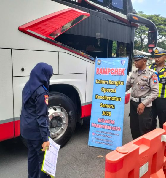 Kediriselaliudihati – Satuan Lalu Lintas Polres Kediri Kota bersama instansi terkait melaksanakan kegiatan ramp check terhadap kendaraan angkutan umum di Terminal Tamanan, Kecamatan Mojoroto, Kota Kediri, Jumat (6/2/2026). Kegiatan ini dilakukan sebagai langkah awal memastikan kesiapan sarana transportasi umum menjelang pelaksanaan Operasi Lilin Semeru 2025.
