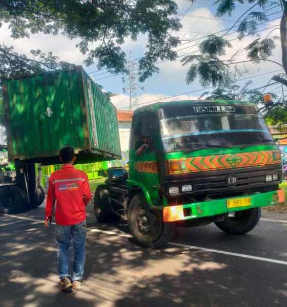 Satlantas Polres Kediri Kota Tangani Kecelakaan Bak Kontainer Lepas dari Truk