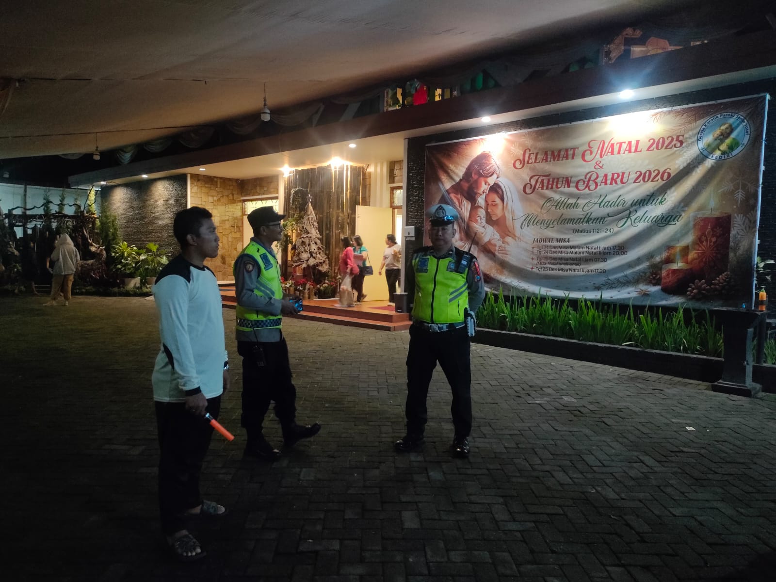 Petugas juga mengimbau pengurus gereja dan jemaat agar tetap waspada serta segera melapor kepada aparat kepolisian apabila menemukan orang asing atau aktivitas mencurigakan di lingkungan gereja.