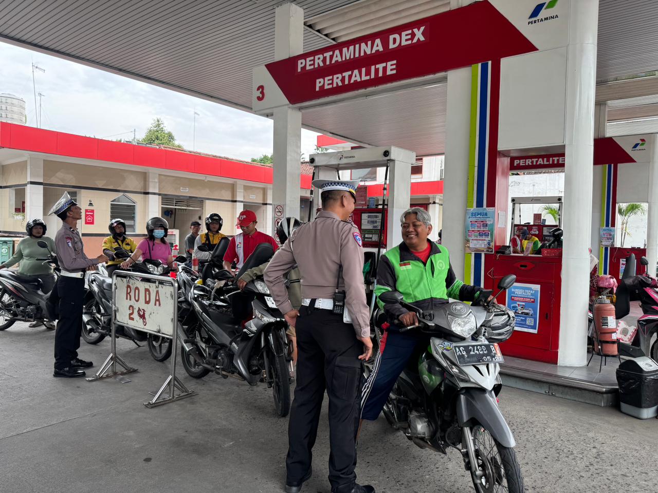 “Melalui Polantas Menyapa, kami ingin hadir lebih dekat dengan masyarakat. Kami mengajak pengunjung SPBU untuk tetap tertib berlalu lintas, mematuhi rambu dan aturan, serta menjaga keamanan diri selama Ramadhan. Ini upaya sederhana namun berdampak besar dalam mencegah kecelakaan dan gangguan kamtibmas,” ujar AKP Yudho.