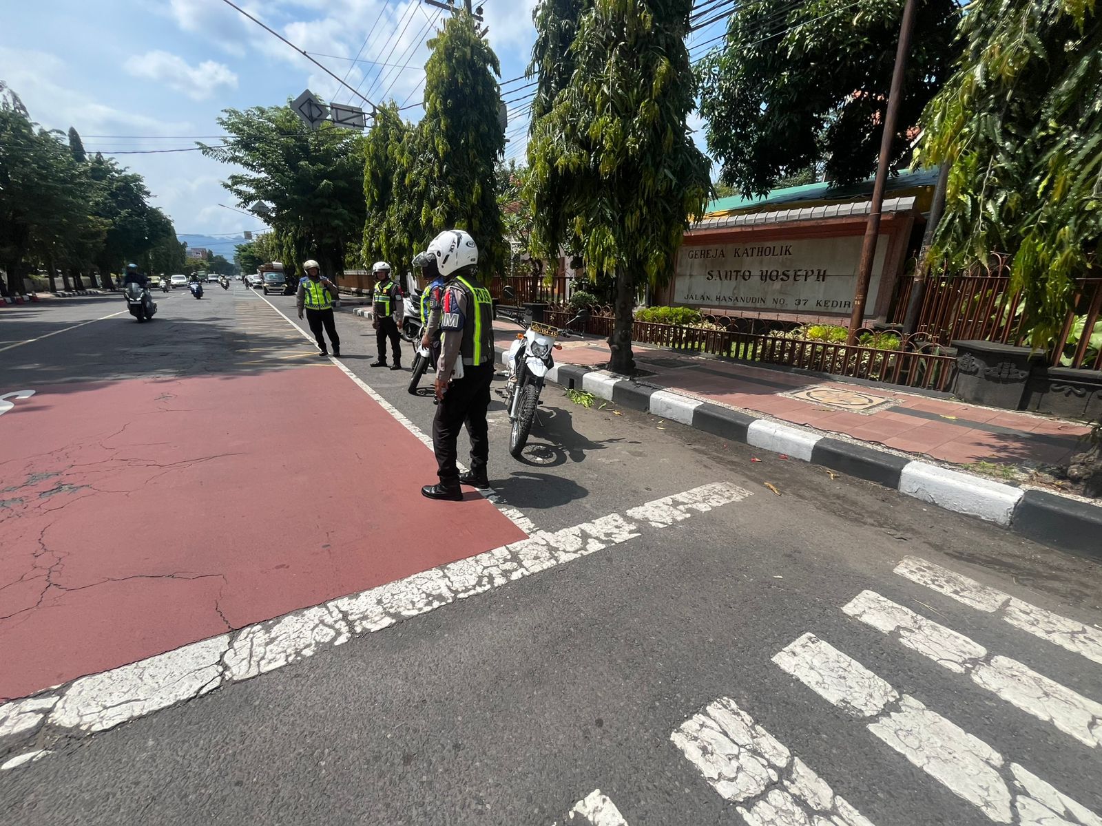 Personel yang terlibat terdiri atas anggota Polri, personel TNI, Satpol PP, serta petugas keamanan internal gereja. Selain melakukan pengamanan di dalam dan sekitar gereja, petugas juga melaksanakan pengaturan arus lalu lintas serta membantu penyeberangan jemaat guna mengantisipasi kemacetan dan potensi kecelakaan lalu lintas.