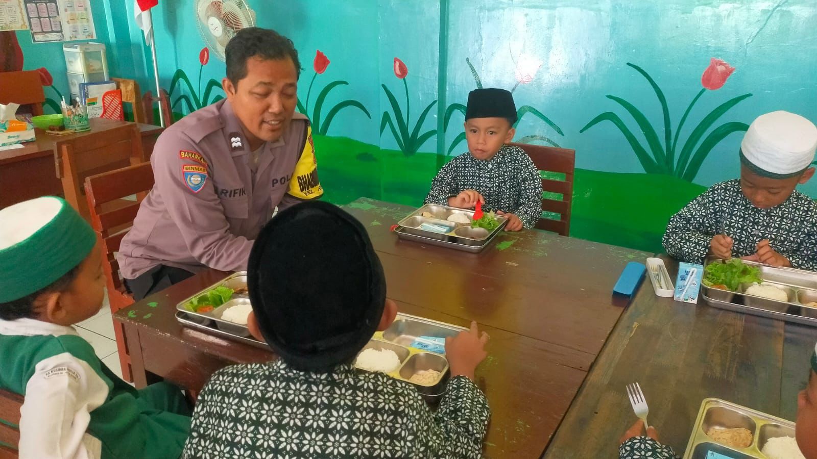 Wujud Kepedulian Polri Terhadap Program Peningkatan Gizi Anak, Bhabinkamtibmas Rejomulyo Kediri Awasi Penyaluran MBG