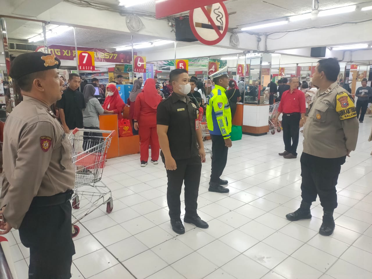 Sejak pukul 10.00 WIB, personel Turjagwali melakukan pemantauan dan patroli di kawasan Kediri Townsquare, Simpang Empat Ringinsirah, seputaran Jalan Stasiun, hingga depan Kediri Mall. Kawasan tersebut dikenal sebagai pusat aktivitas ekonomi dan perbelanjaan yang ramai dikunjungi masyarakat saat akhir pekan maupun hari libur.